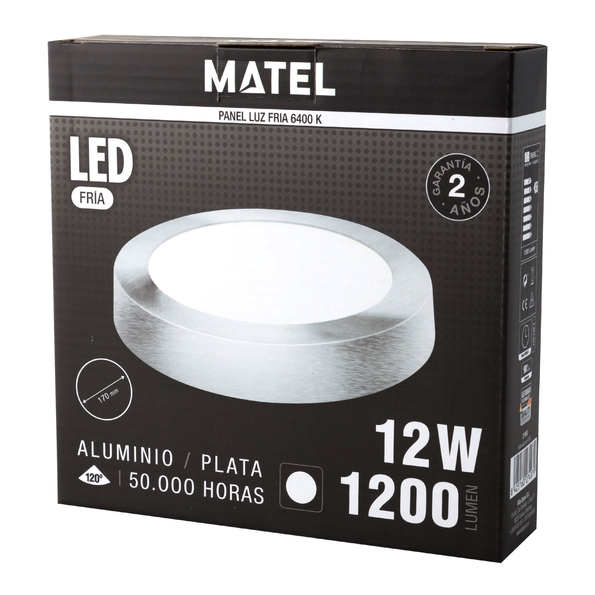 DOWNLIGHT LED MATEL SURFACE ROND ARGENT 12W