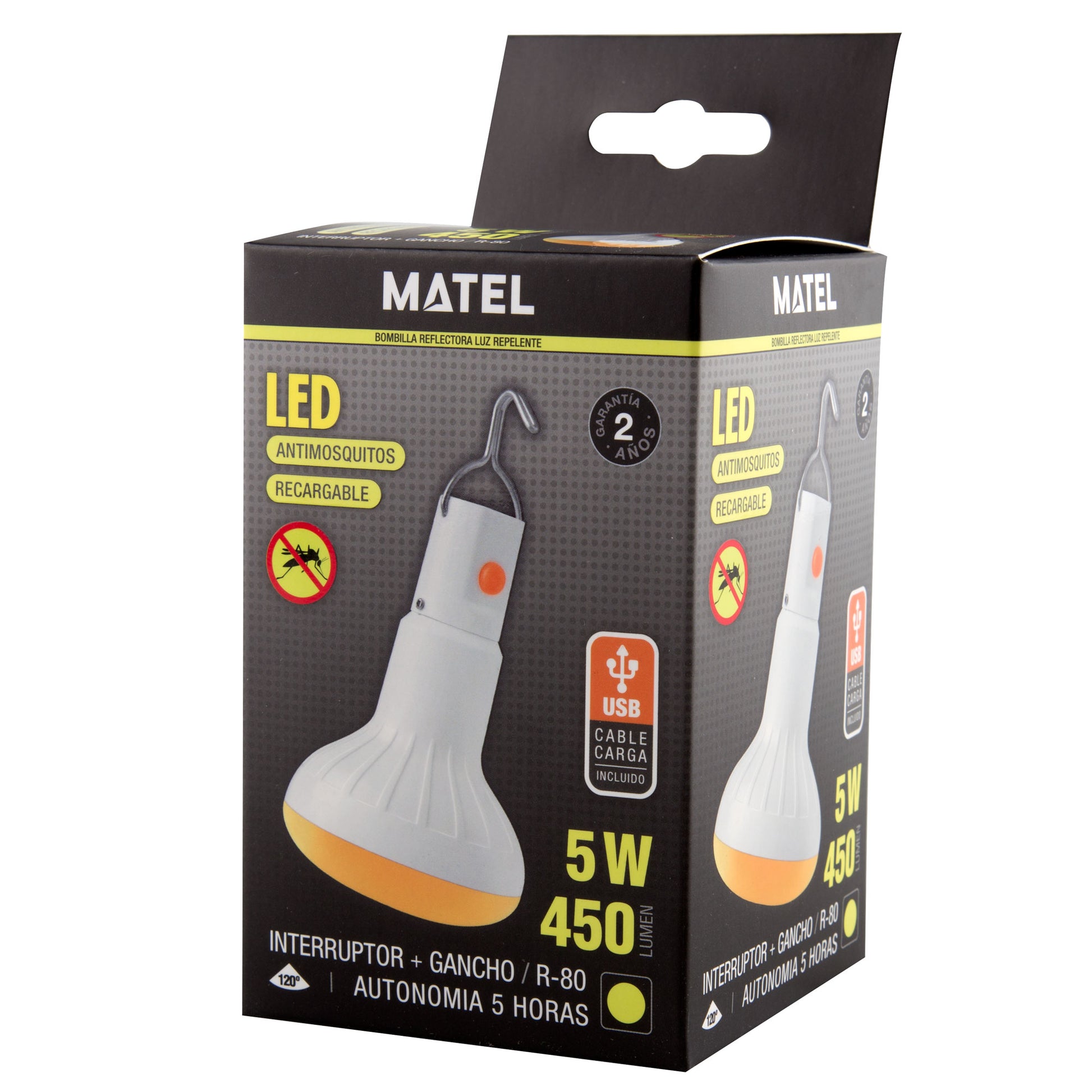 LAMPE LED R80 RECHARGEABLE ANTIMOSQUITO 2000MAH AVEC CROCHET USB