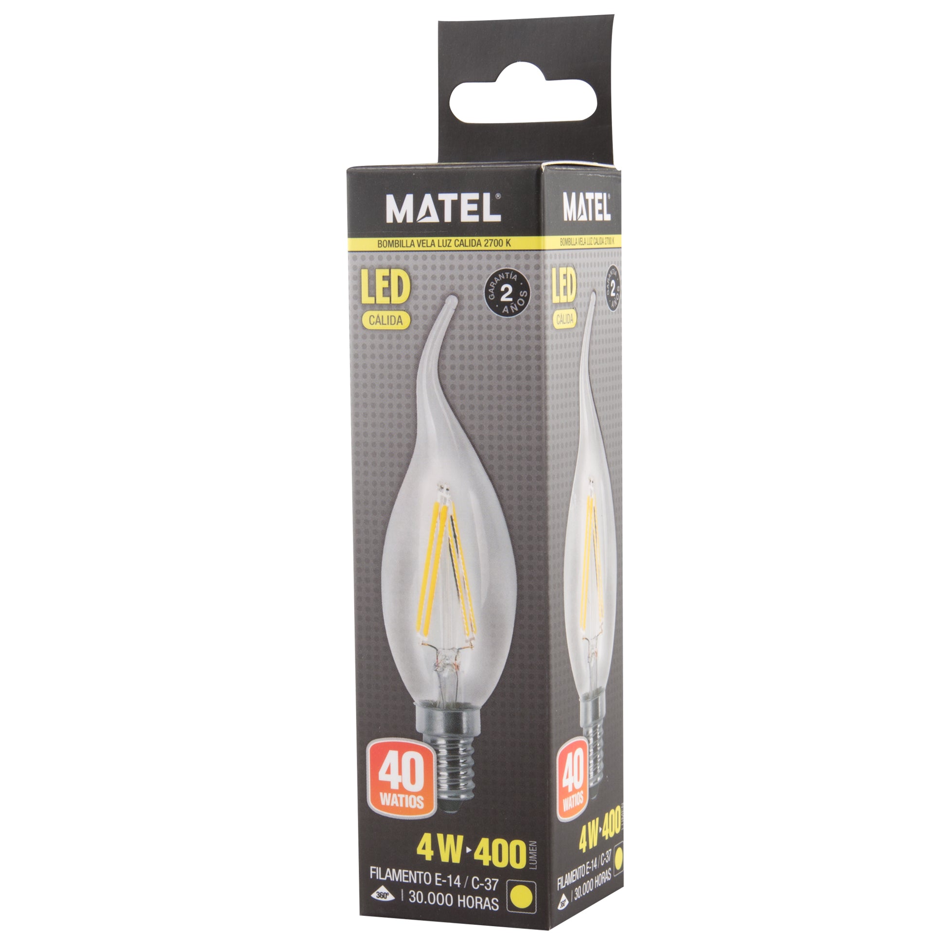 LAMPADA LED E27 E14 TRANSPARENTE 2700 K 6400 K VELA CHAMA FILAMENTO 360º C37