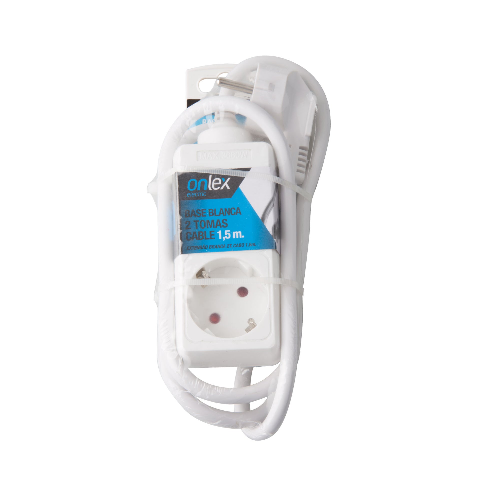 EXTENÇÃO ELÉTRICA COM BASE BRANCA 2 TOMADAS COM CABO 1.5M