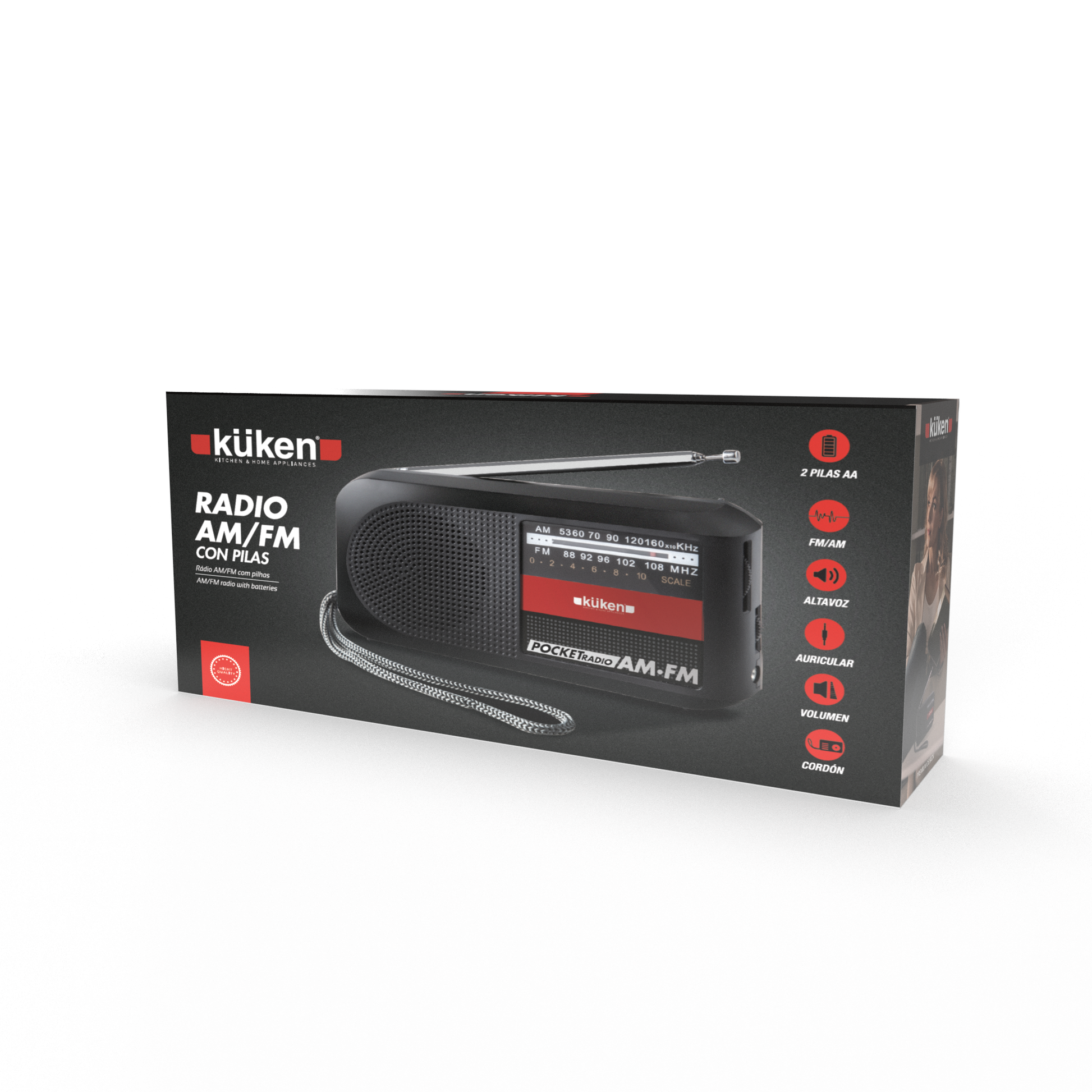 • Inclui cordão para prender o rádio no pulso.